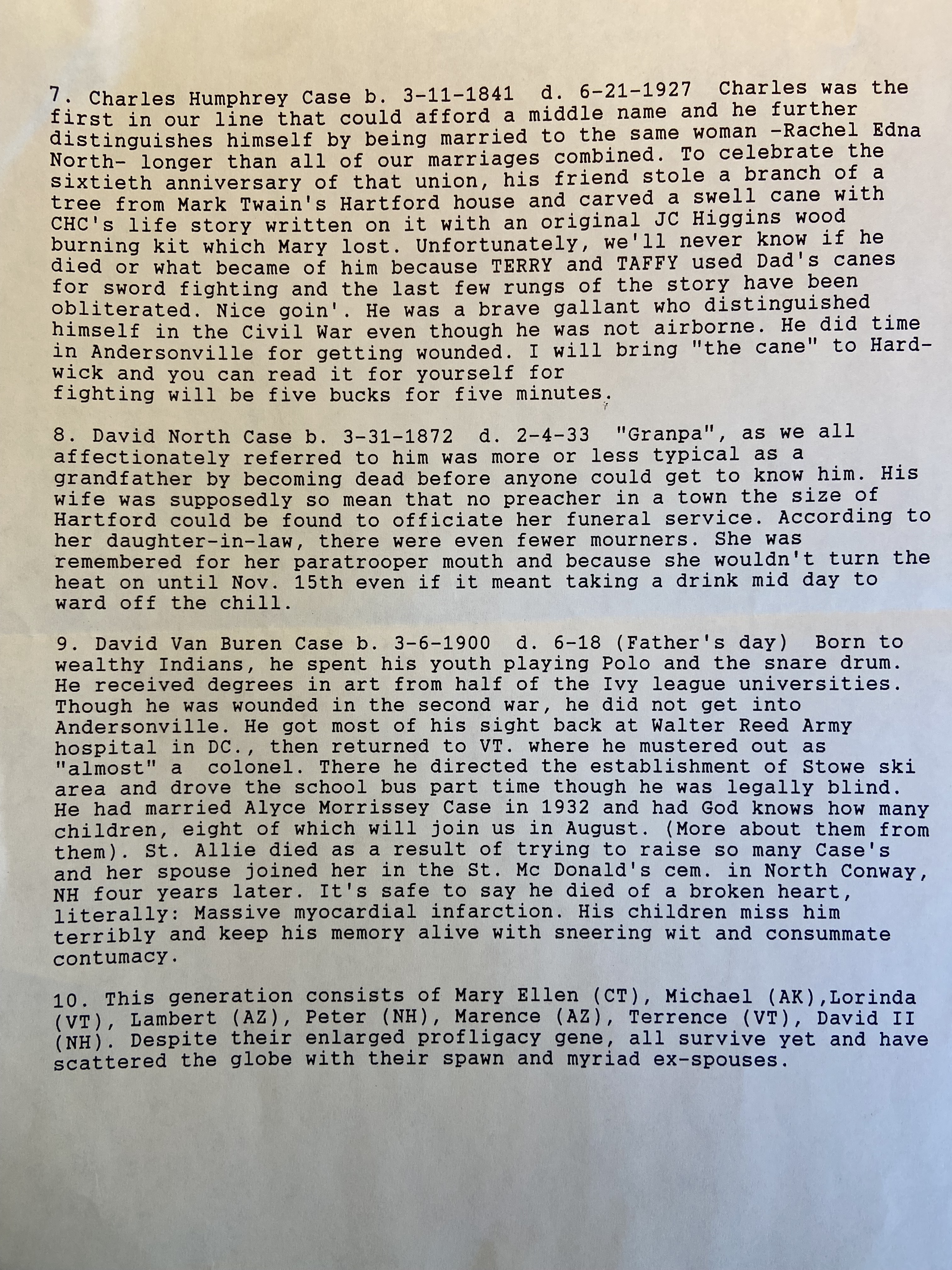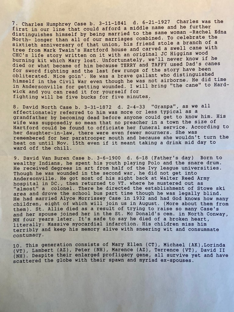 It’s now morphing into a repository for family history, housing a fun letter from my dad to his siblings that I’m calling Dear Clan and a 10,000 word autobiography written by my uncle titled An Exceptional Memory: The Autobiography of Mike Case.